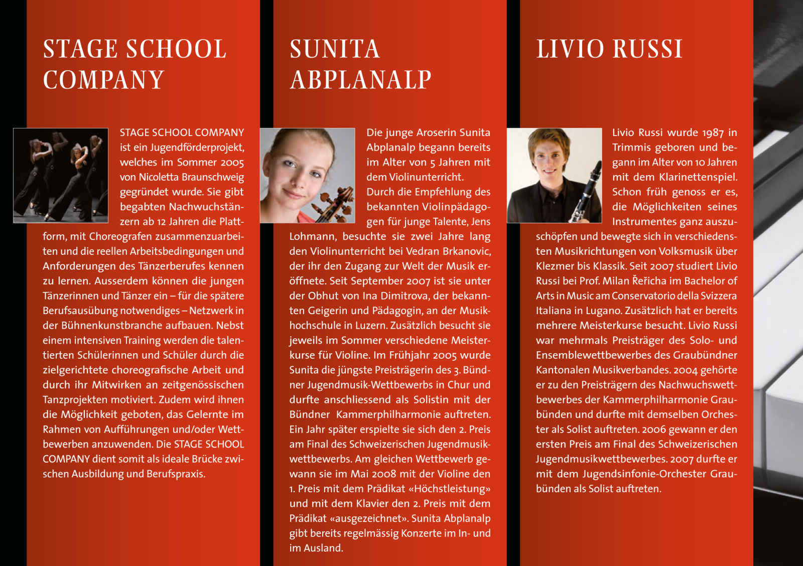 Der erst 15-jährige Teo Gheorghiu hat sich als musikalisches Ausnahmetalent in viel beachteten Konzerten im In- und Ausland sowie als Titelheld im Film VITUS von Fredi M. Murer in die Herzen eines grossen Publikums gespielt. Mit seiner spontanen Zusage, für den Gönnerverein zugunsten der Kinder-Spitex des Kantons Zürich (kispex) ein Klavier-Rezital darzubieten, stellte er seine Virtuosität in den Dienst schwer kranker Kinder.