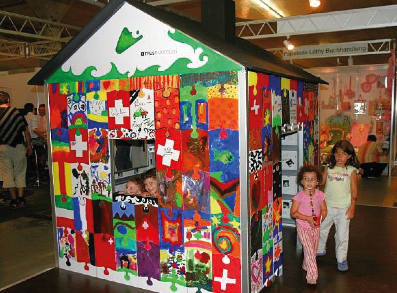 Das Kinderhaus steht symbolisch für das geborgene Zuhause und ideale Umfeld, in dem kranke, behinderte und sterbende Kinder dank der Kinder-Spitex Kanton Zürich gepflegt werden können. Für jedes der rund 170 von Kinderhand gestalteten Puzzle-Bauteile spendete die Trustimmobilien, Initiantin dieser Aktion zugunsten des Gönnervereins kispex, 50 Franken und rundete den Endbetrag grosszügig auf.