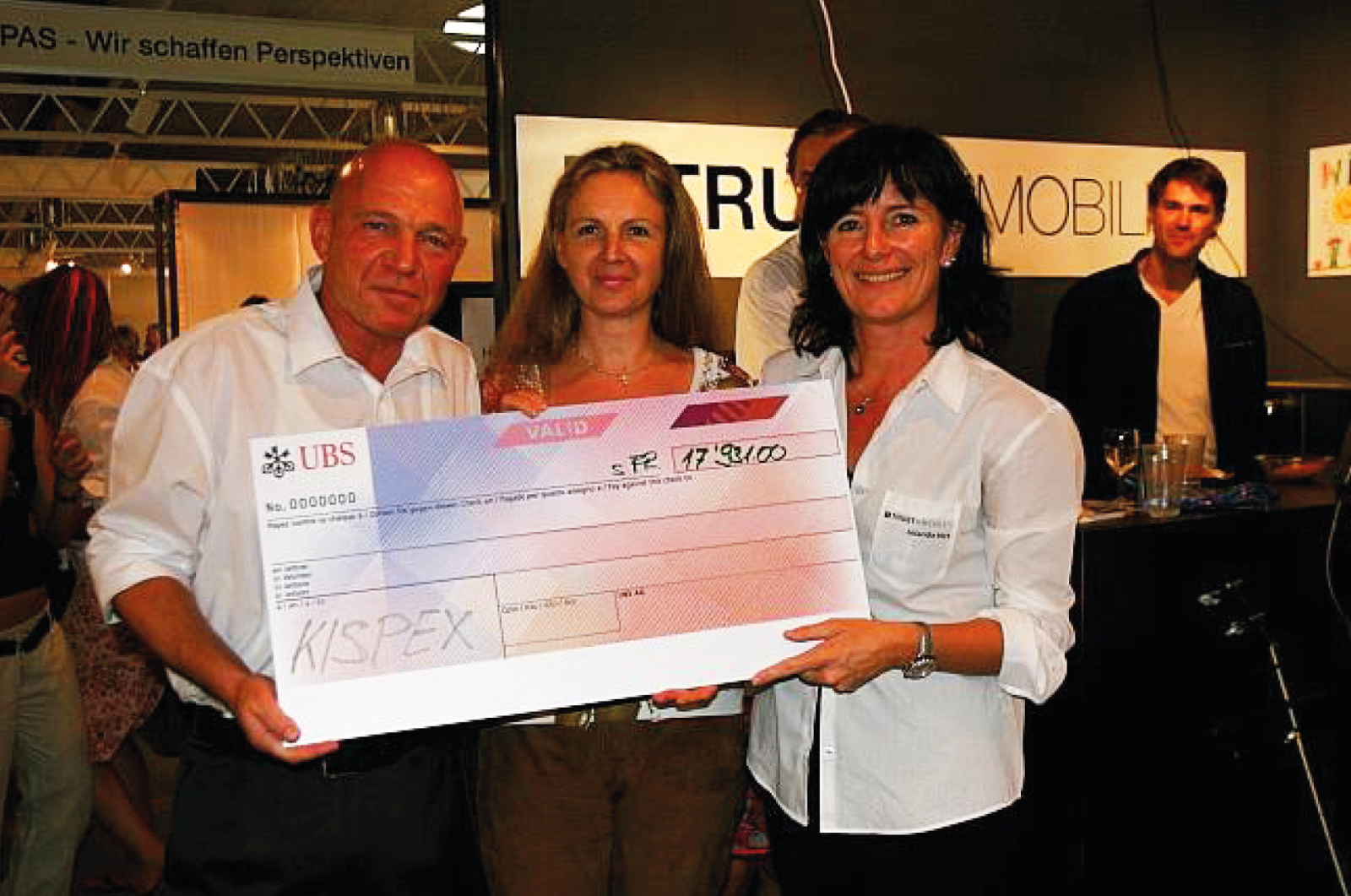 Dank dem Engagement prominenter Sportler wie Vreni Schneider, der Schweizer Fussball-Nationalmannschaft und dem Kloten Flyer Stürmer Viktor Stancescu sowie der spontanen Spenden diverser Firmen und Privatpersonen konnten die Trustimmobilien am feierlichen Finale mit Carmen Fenk dem Gönnerverein kispex 17'931 Franken übergeben. Und dieser Betrag steigerte sich tags darauf dank weiterer Spenden nochmals auf 18'500 Franken!